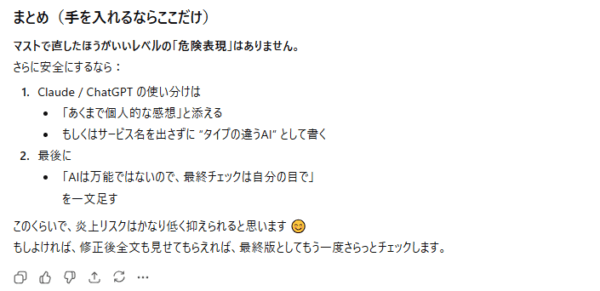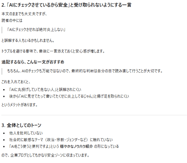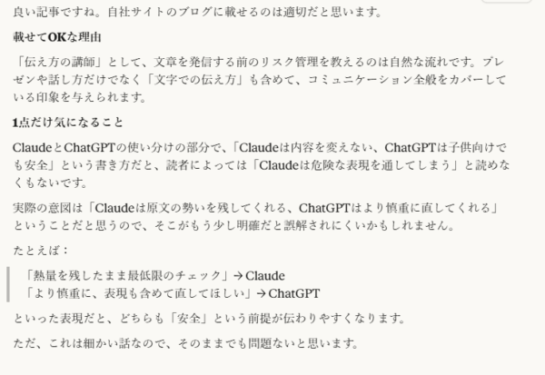 実際に、この記事もAIにチェックしてもらった後のものです。